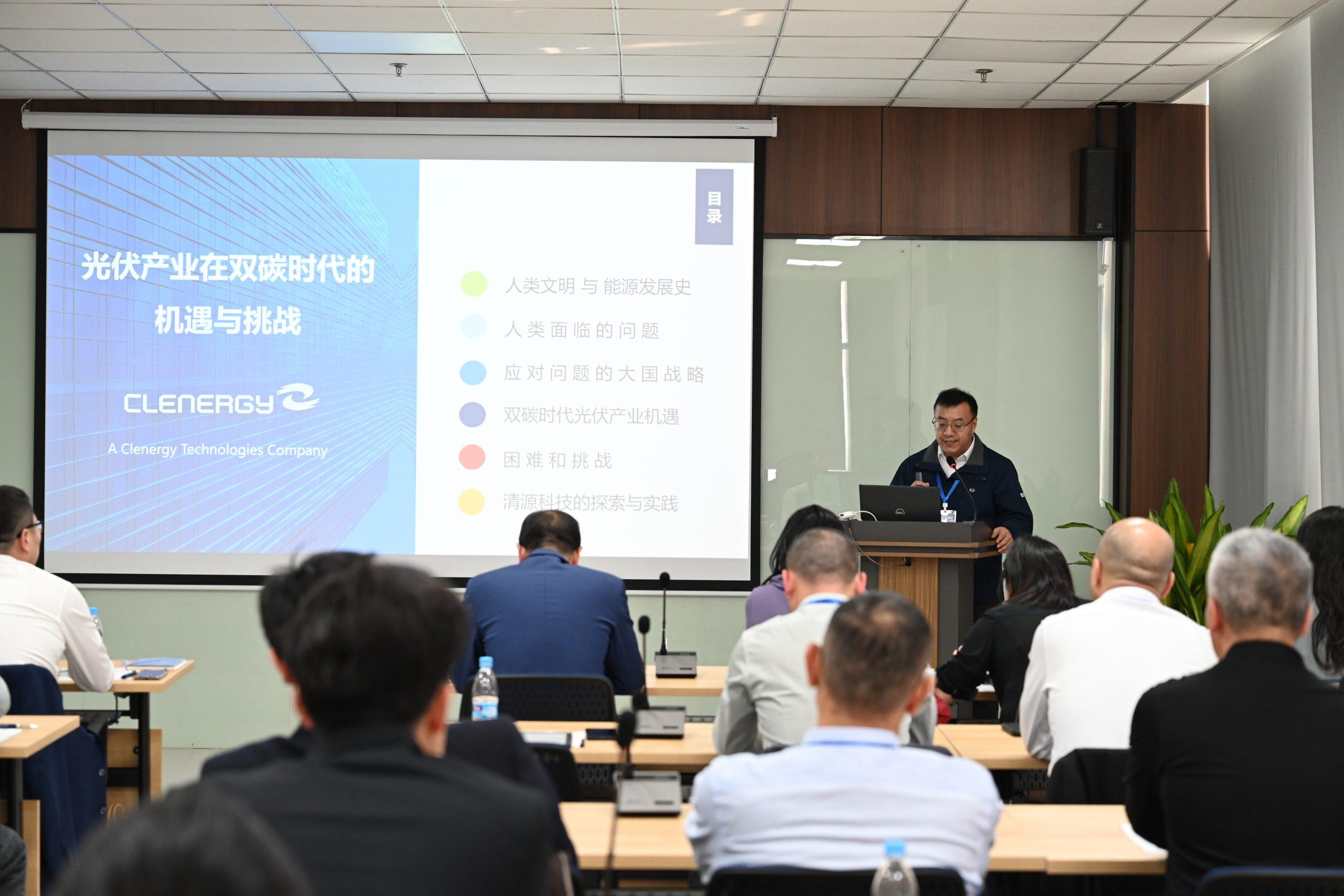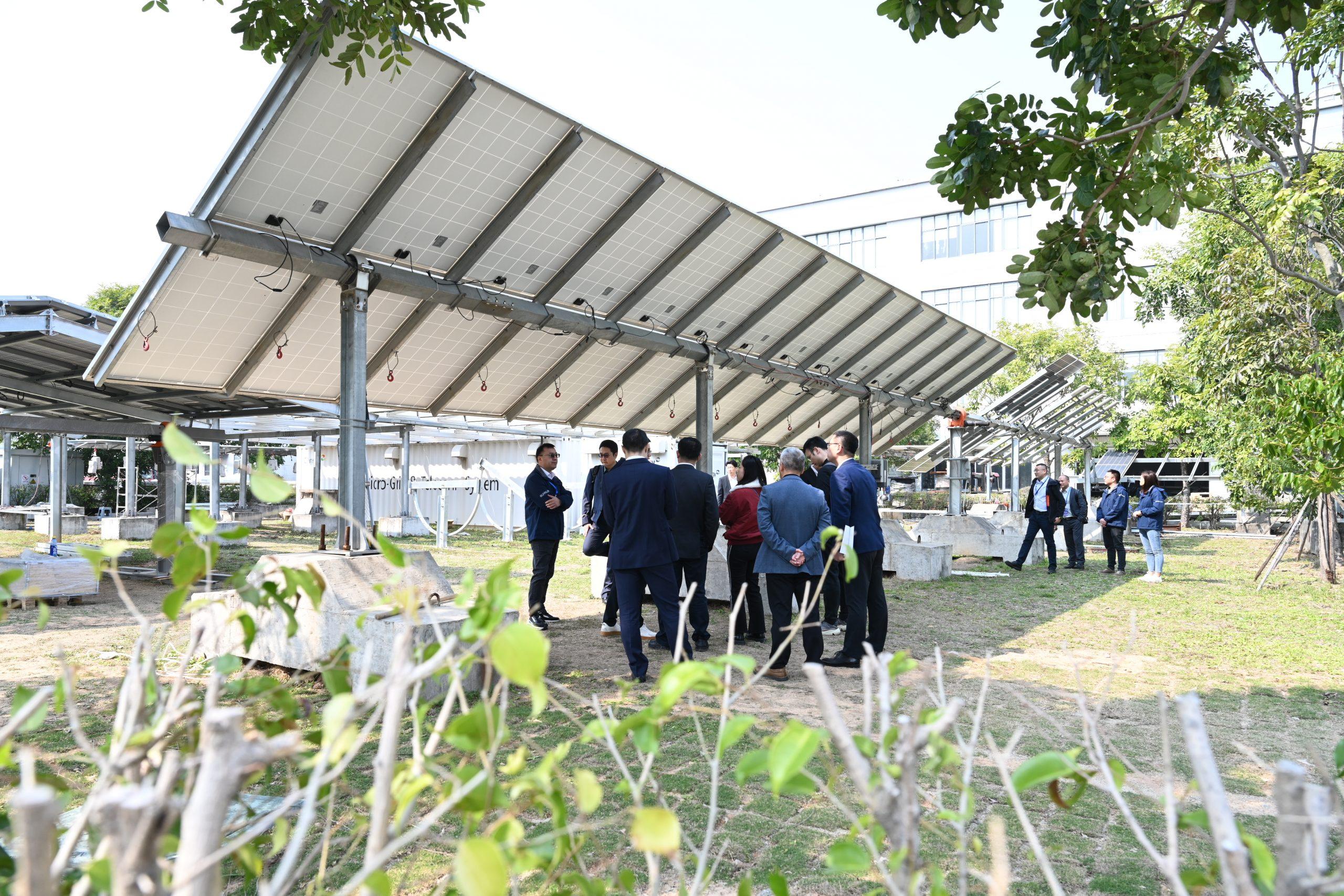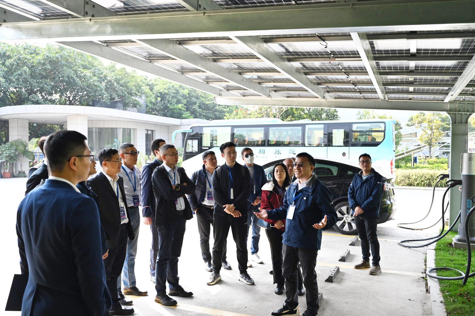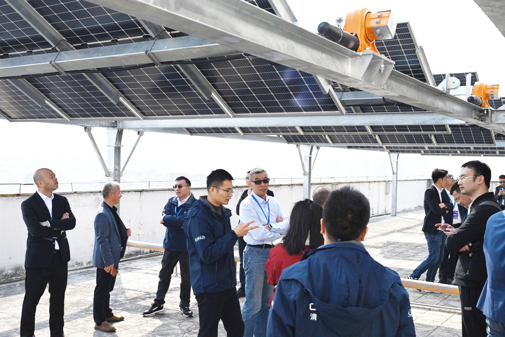 6合联盟科技厦门总部作为先进的绿色低碳园区示范基地,共有十多处光伏电站,高峰时期园区50%以上的用电均为光伏电站所发的绿电。同时该园区也是光伏发电应用全景解决方案的缩影,从屋顶光伏电站、绿化带上的光伏电站、光伏车棚、BIPV阳光房等场景应有尽有。其中,数字化智能光伏跟踪器以先进的跟踪算法为基。源咂分视肟煽啃,在极端天气下仍可保持优秀的气动稳定性,可有效提升光伏发电量达20%,提高电站投资回报率。中欧校友在实地考察中了解了光伏发电的原理及实际运用场景,通过SCADA数据云平台云参观了6合联盟科技在中国境内所投资的近百座光伏电站的发电概况,近距离感受光伏电站在数字科技驱动下的应用与提升。