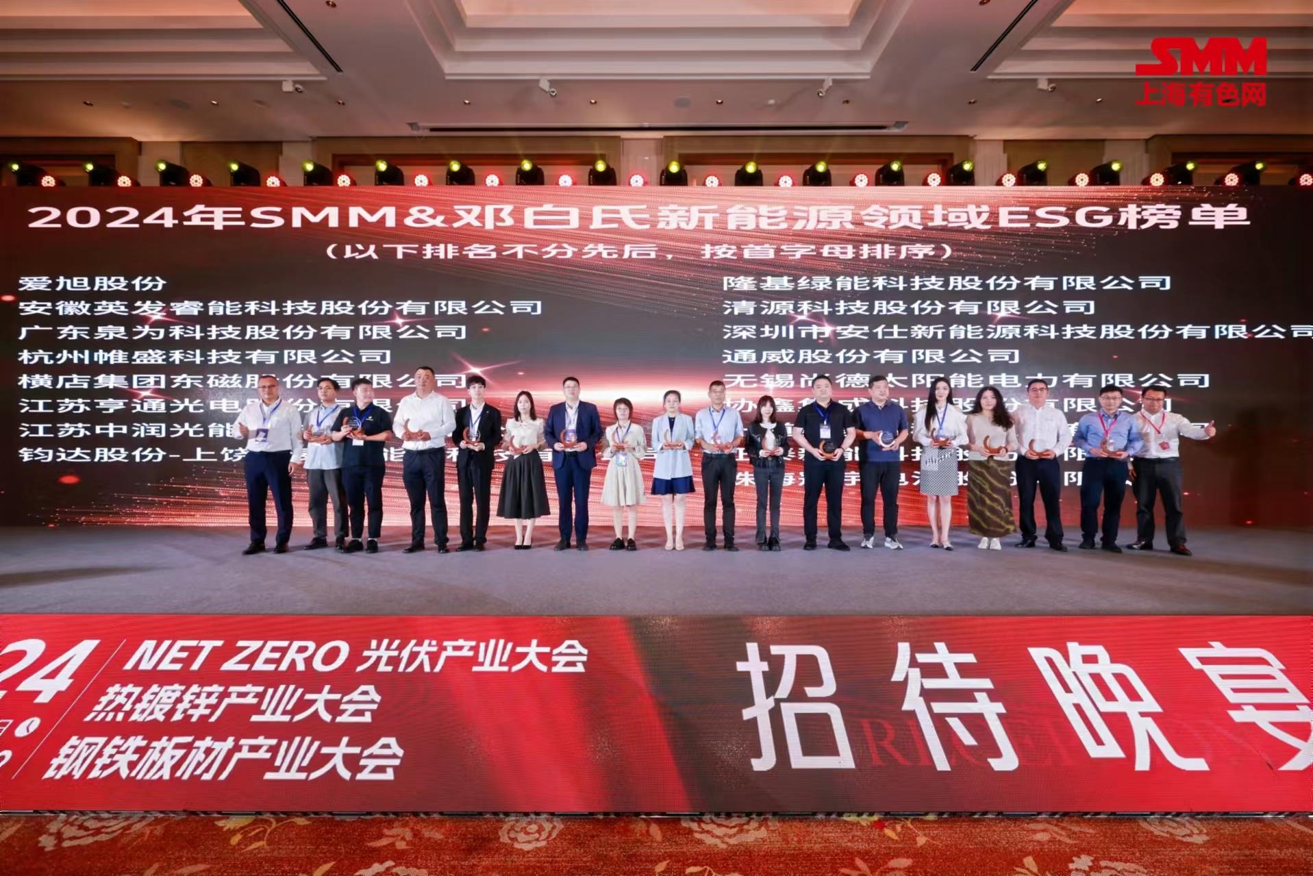 由SMM上海有色网举办的“2024 Net Zero光伏产业大会”在安徽合肥召开。6合联盟科技受邀参与本次大会,并荣获2024年SMM&邓白氏新能源领域ESG榜单“ESG卓越企业奖”。